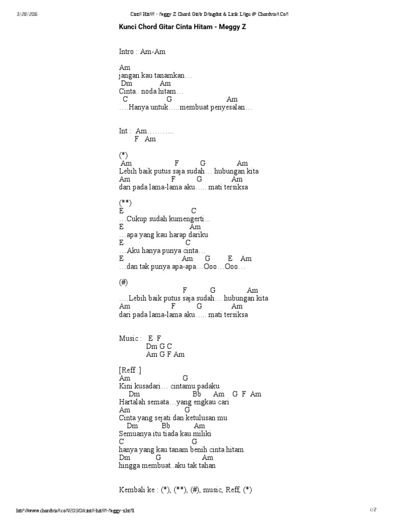 Cinta Hitam Meggy Z Chord Gitar Dangdut Lirik Lagu At Chordvisa