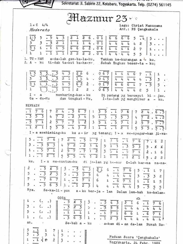Nyanyian mazmur 23. Daftar lagu yang ada di MNR2 Mazmur Nyanyian Rohani Buku 2 Nyanyian Rohani 1 Hormat Bagi Bapa Serta Anak dan Rohulkudus. Mazmur 23 memang merupakan nyanyian agung yang begitu indah. Aku tidak kekurangan apa pun.