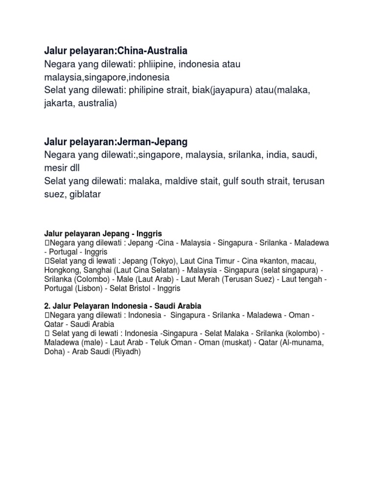 Phliipine indonesia atau malaysiasingaporeindonesiaSelat yang dilewati. Jalur pelayaran negara yang dilewati selat yang dilewati jepanginggris indonesiasaudi arabia Jalur Pelayaran Negara Yang Dilewati Selat Yang Dilewati Oleh edukasi Diposting pada 08102019. Malaka - Bengal baymaldive strait Gulf country north strait Jalur pelayaran.