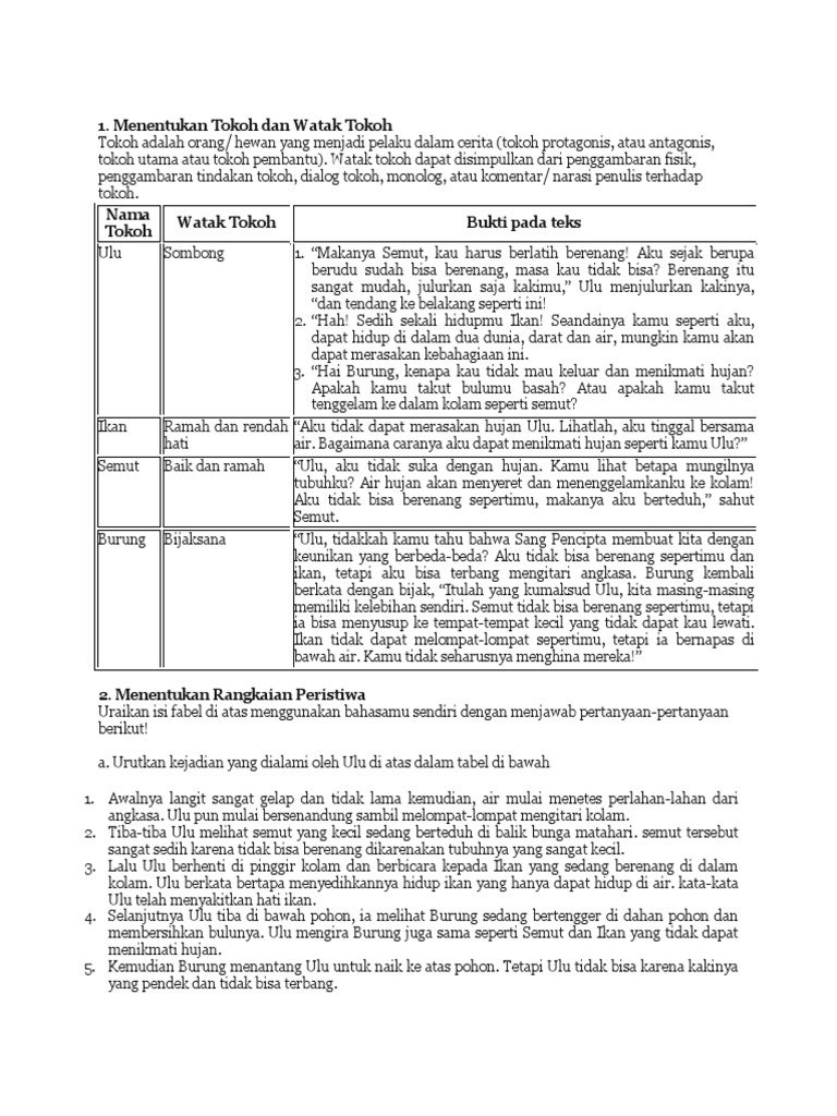 Urutkan kejadian yang dialami oleh ulu di atas dalam tabel di. Uraikan isi fabel di atas menggunakan bahasamu sendiri dengan menjawab pertanyaan-pertanyaan berikut. Soebandi jember skripsi oleh ayu waica pratiwi nim 102010101018 fakultas kedokteran universitas jemb. Jawa Timur Park 1 2 dan.