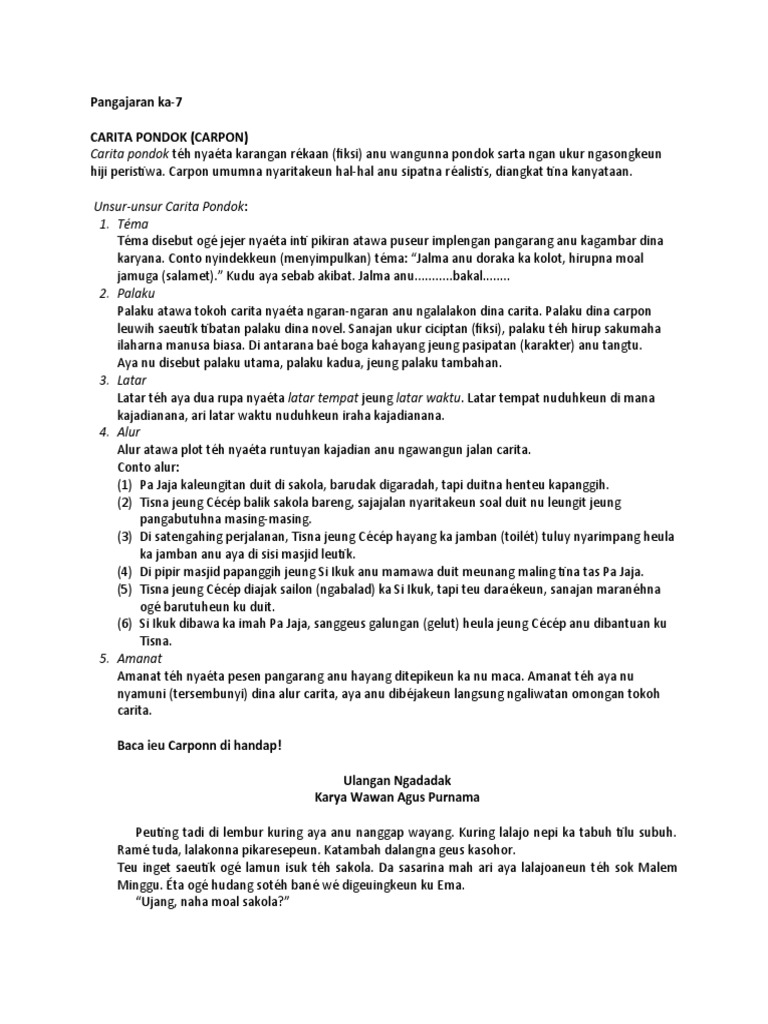Saha anu saenyana nyokot duit Pa Jaja teh. Maham Eusi BacaanPikeun maham eusi carpon di luhur pék jawab pananya di handap1. Si Ikuk ngajak.