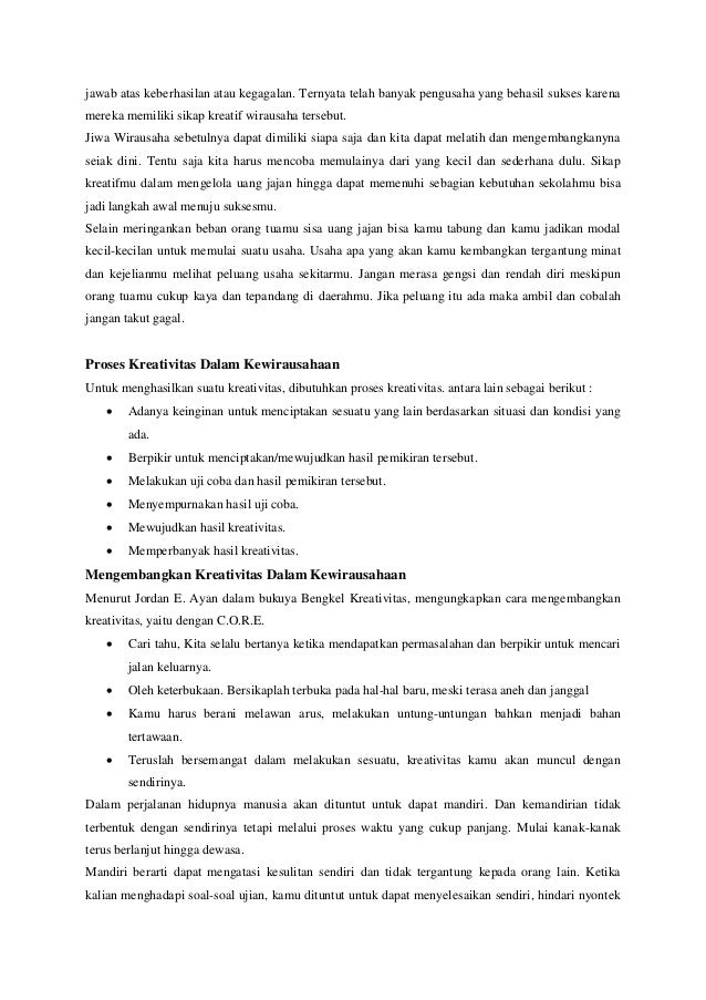 Pemberian nama wirausaha harus berpikir ke. Salah satu cata untuk mengembangkan pemikiran inovatif adalah dengan melakukan analisis pada peluang usaha. Apakah kreativitas hanya berada pada bidang yang berhubungan dengan seni.